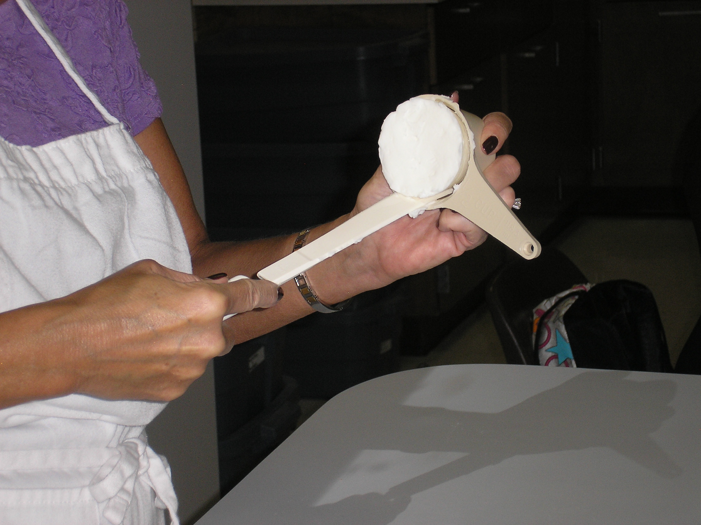 Shortening packed into a dry measuring cup