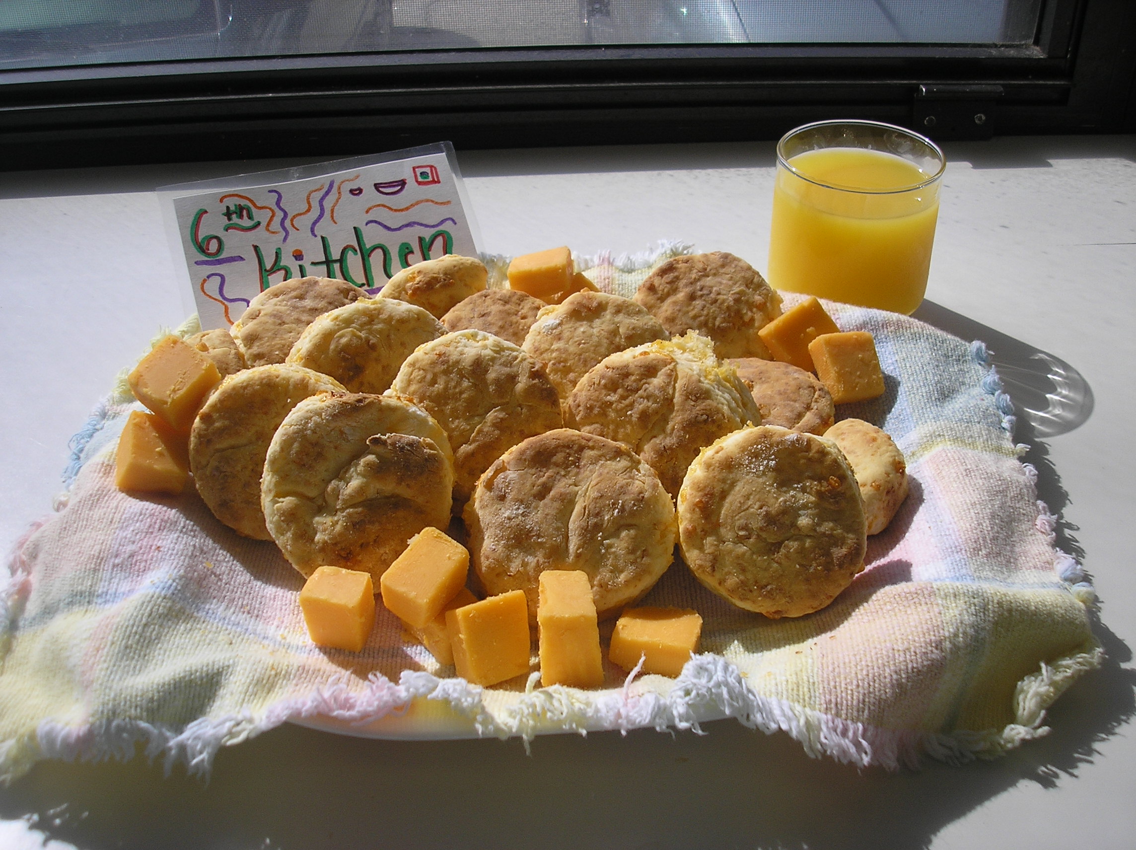 This was an easy recipe and the biscuits are very good. You can put the cheese in the biscuits which gives them a great taste or even jelly instead of cheese just to add variety.