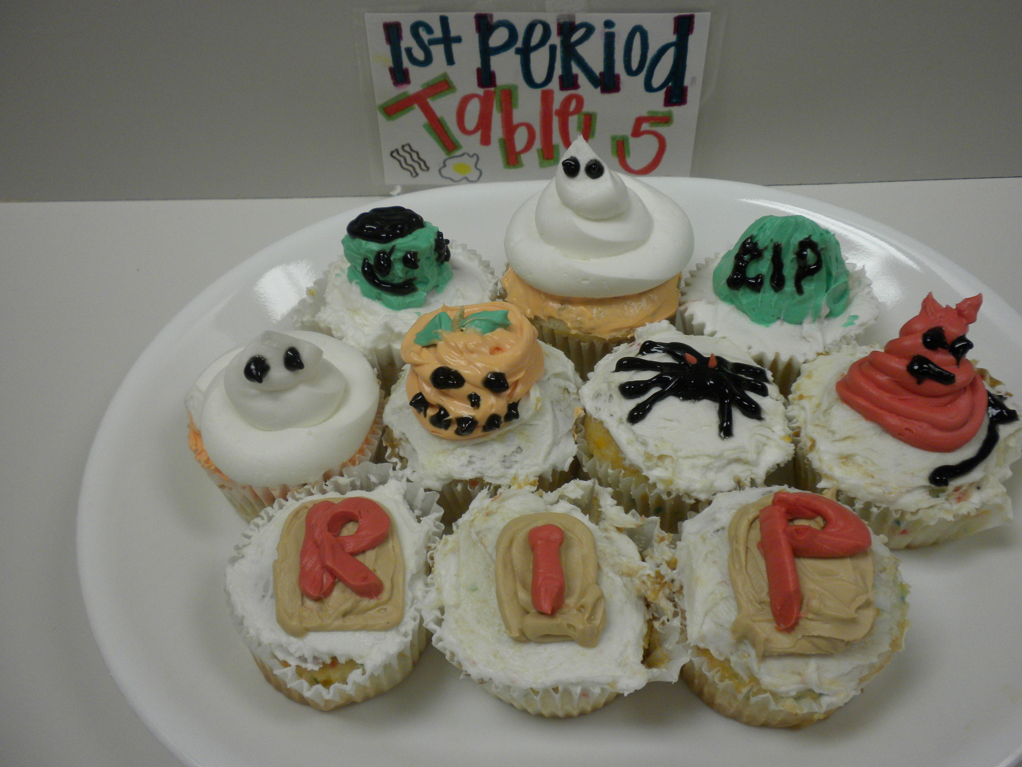 all the cupcakes look so spirit-y. i love halloween and the group that was the best was table 5 in 1st period.