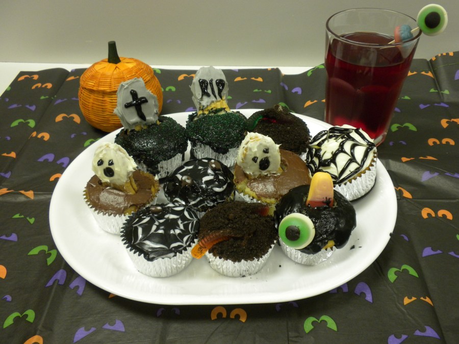 The ominous dark cupcake caught my attention as Parker held out the tray. I grabbed the one with the mysterious black icing and a decorative spider web across the top. I admired it before peeling back the shiny silver wrapper enclosing the tasty treat. As I took a bite of the moist cupcake my mouth exploded with joy. It was a blast of sugary goodness that abundantly pleased my taste buds. I slowly ate the remainder of the delicious snack, savoring each bite as if it were my last, until to my dismay, it was gone.