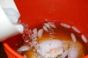 I really never knew you had to put ice and cold water on the turkey inn a bucket.