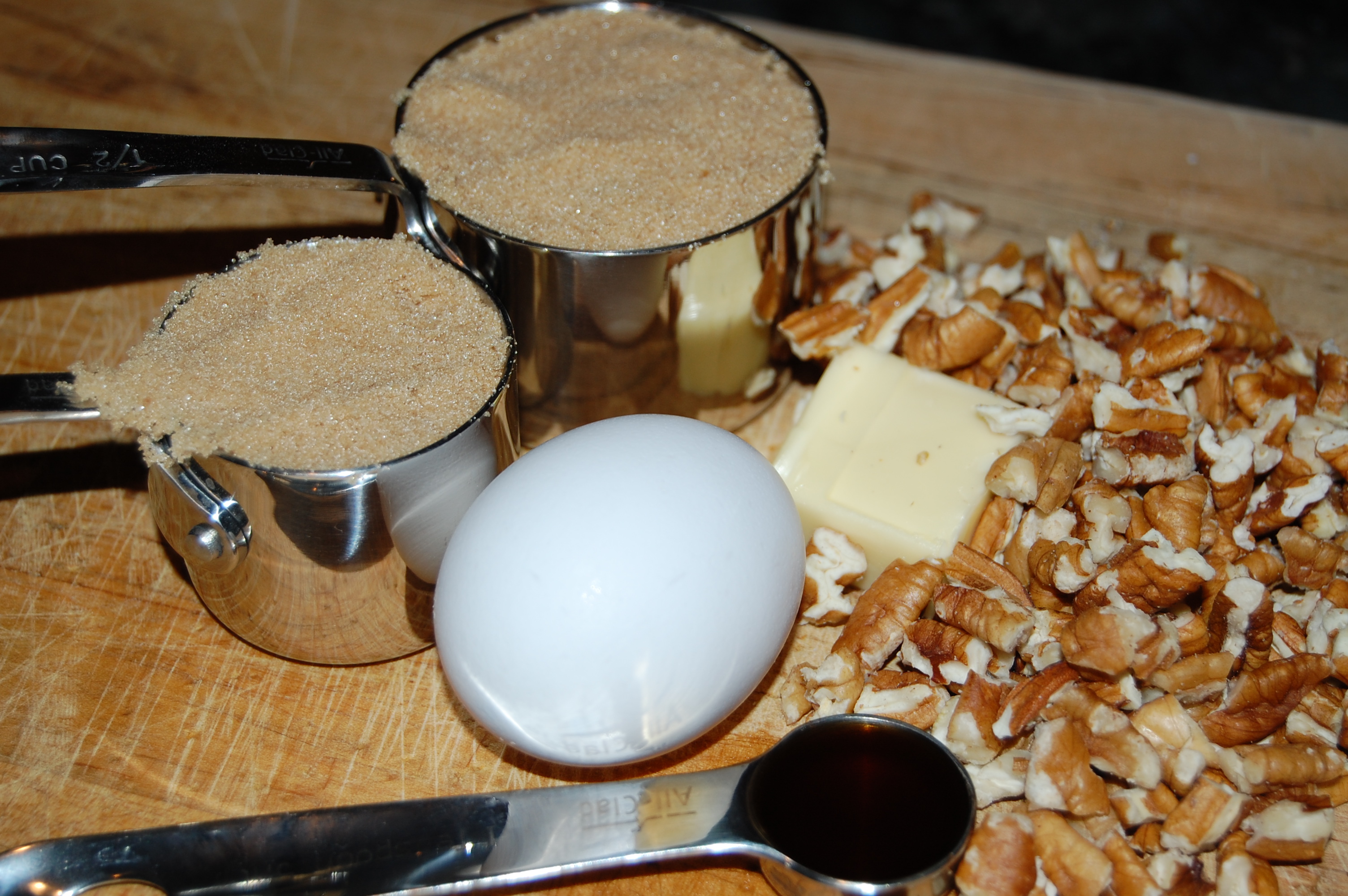 Filling – 1 egg, 1T butter, 3/4 c. brown sugar, 1 t. vanilla, 1/2 chopped pecans