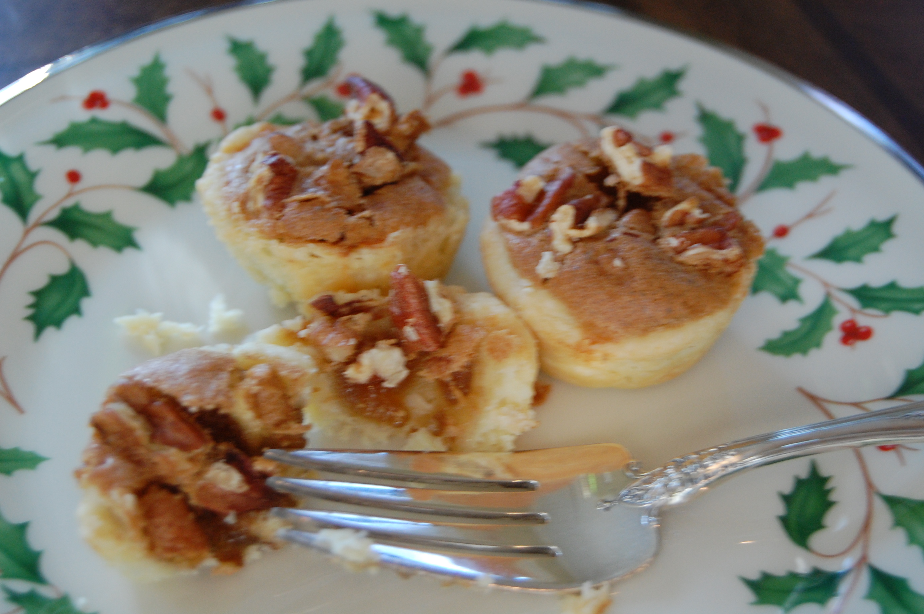 Pecan pie is GI Joe’s favorite dessert.  No that is incorrect!  Any dessert is GI Joe’s favorite dessert.  Before I could get these little babies cooled good, he had popped two of them in his mouth as we were about to eat dinner.  Dessert before dinner can be a good thing!