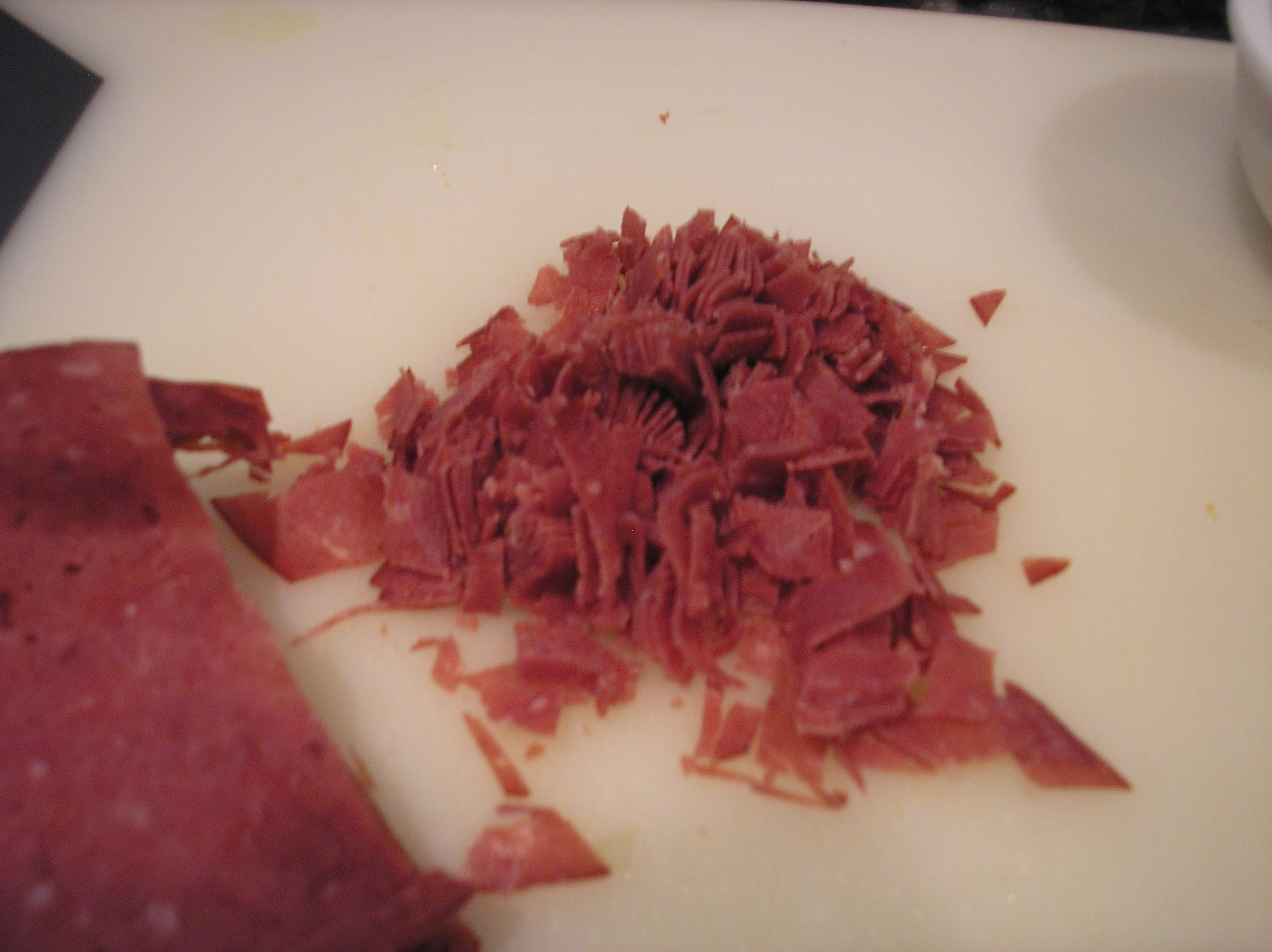 The next step is to finely chop bell pepper and onion.  Use an electric food chopper in order to get these really fine.   1/3 cup of bell pepper is needed and 1/4 cup of onion.  Sorry I did not take a picture of this.  I had company  and I am sure that I was talking.