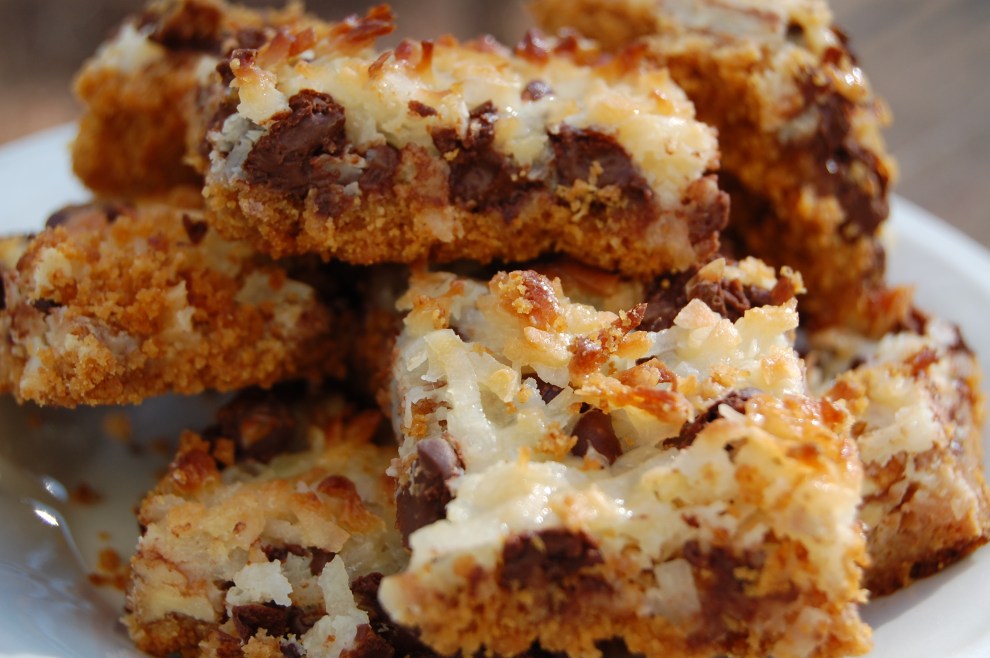 This recipe is great for beginner cooks  It is easy, quick and good to the last crumb.  Open the pantry now I’ll bet you have all of the ingredients.  In fifteen minutes you can have these in the oven.  Eat them while their hot right out of the pan.  The chocolate will be hot and gooey, the toasted pecans crunchy. the coconut sweet and the cracker crust buttery!