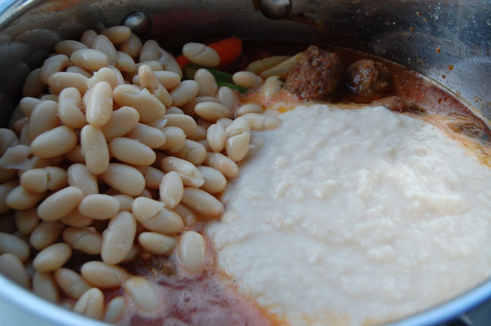 • 2 regular cans cannellini beans, one mashed ( I drain and rinse first)