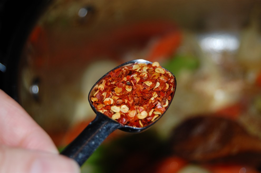 Your soup looks wonderful, but that was a very big spoonful of dried chilis!