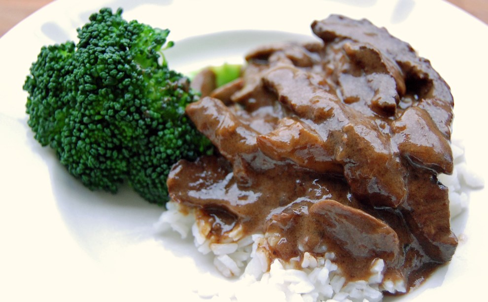 This is one of my all time favorite recipes. It is easy to put together and it taste great. To me it is comfort food. Rich gravy made with white wine added mushrooms over rice. Heaven on a plate! The recipe came from my long ago friend Cile that lives in Baton Rouge where great food runs rampant. It is one of those dishes that you can throw together in 20 minutes and leave it alone for about an hour. When you return to check on it the flavors are unbelievable. Trust me if you like a nice rich gravy with tender strips of steak this is it!