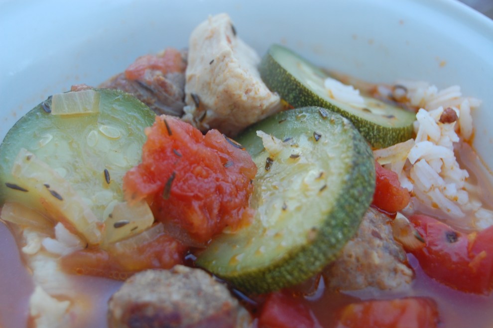This is an easy Gumbo. You can put it together in less than 30 minutes and let it simmer for 3o minutes. It is better the next day. The flavors have time to develop and the zucchini can thicken the gumbo. That’s right! The squash is a substitute for okra which is usually used in most gumbos. It is hard to find fresh okra in the winter so the zucchini is perfect. For me this soup ranks right up there with