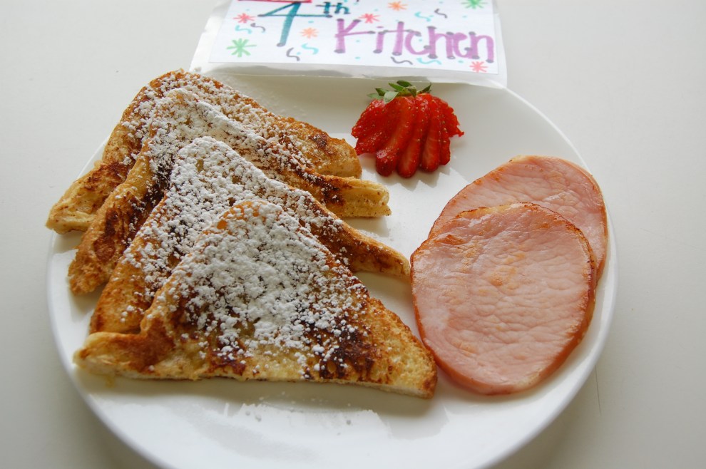 i learned that you need butter on each side when cooking the french toast and that the powdered sugar makes it look and taste extra extra good : )