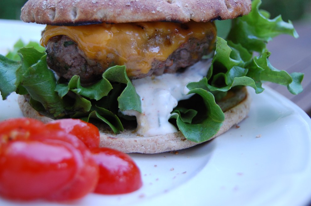 The recipe came from here. They added bacon and grilled onions, but I personally don’t feel they are needed. When I first tried the recipe I added both and they are good, but I think it takes away from the great burger flavor.
