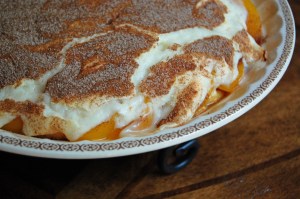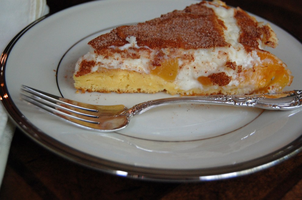 I am begging forgiveness before I post this pie recipe.  It is so good that you are going to want to eat the whole thing.  It is that good and I am not exaggerating.  Well, maybe a little.  You’ll  love it.  It will forever be your go to pie.  And yes,  there’s no crust to fool with.  But wait, I love a  flaky crust. So you’re asking yourself,” why does she love this pie?”  There is something about the peaches, cream cheese, and cinnamon together that makes it melt in your mouth. Get this, it calls for  canned peaches. That’s just wrong.  It is too easy if you ask me.   A big thanks to Anna for giving me this recipe a long time ago.   Now it is your turn to make this scrumptious dessert and please don’t hate me for it!