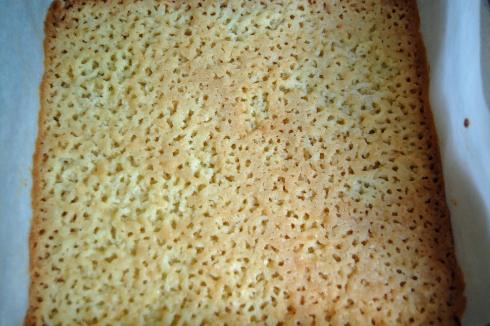 When the bars come out of the oven they are suppose to have little holes in them. This will tell us that they are done correctly.