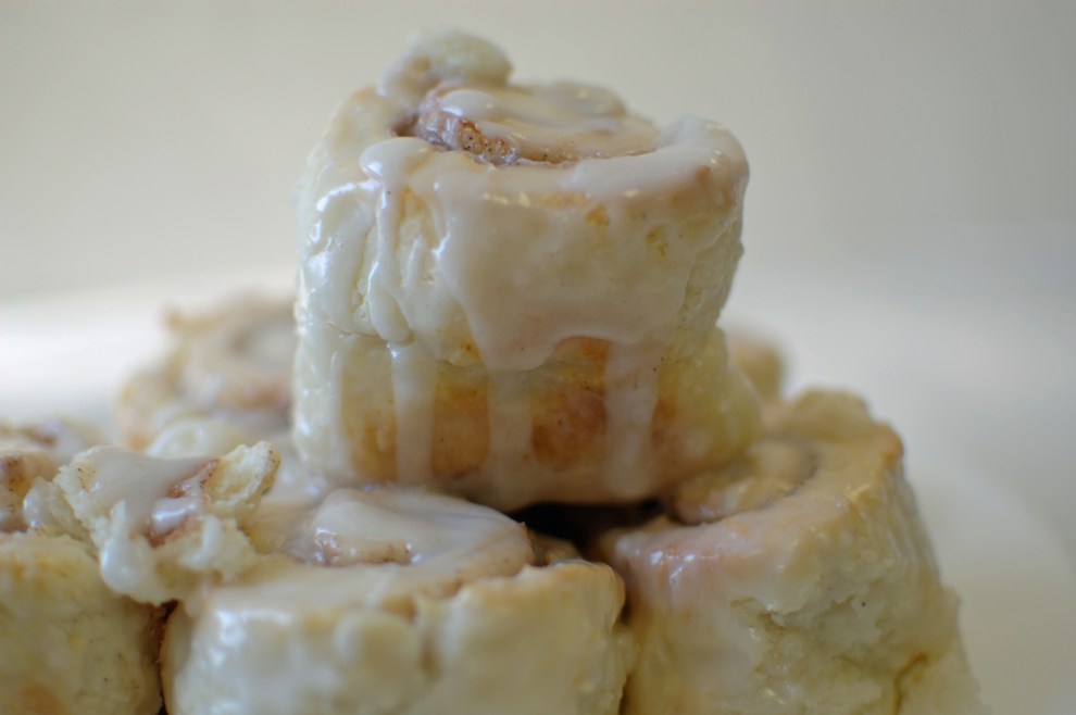 Cinnamon rolls cooking in the oven are just plain good. The cinnamon and sugar melting together sends out an aroma that turns up the senses a notch and makes the mouth water. But, if you’re like me and short on time cinnamon rolls made with yeast dough are not always an option.