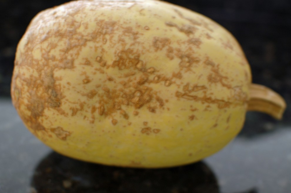 This gourd of a vegetable is all new to me.  I had never tasted it nor cooked it until it arrived in my CSA box right before Thanksgiving.  I had no idea what to do with it.  Luck would have it that one of my favorite blogs Clotilde’s Chocolate and Zucchini  just happened to post this Spaghetti Squash Gratin that same week.  It looked delicious so I just had to try it.    I am so glad that I did because it is fantastic and super easy!  In fact the hardest part is cutting the squash in half!