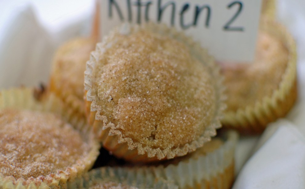 So let’s get to the recipe. It is great. These muffins only have one half cup of sugar meaning that they are not cake hiding under the name muffin . The batter is more soupy than any muffin I’ve ever made. The first time making them I was skeptical about the outcome. But I was pleasantly surprised with the soft crumb and great flavor. Most high school students scoff at recipes that have raisins so I made them at home and let them taste without knowing the ingredients. They thought they were apples. How funny is that? These were a hit with everyone. So here is the first success of the semester and we’re hoping for more just like today!