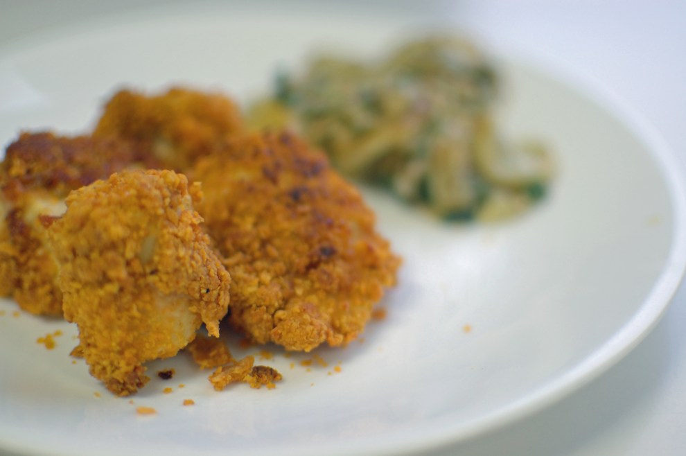 i learned that cheez-it are a good coating in chicken. and extra healthy!
