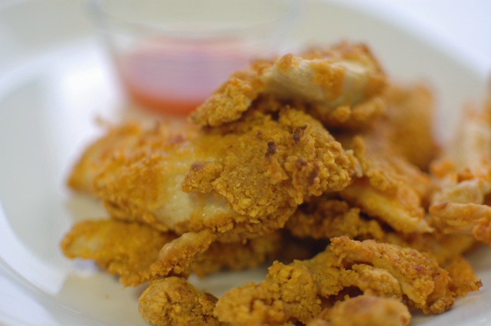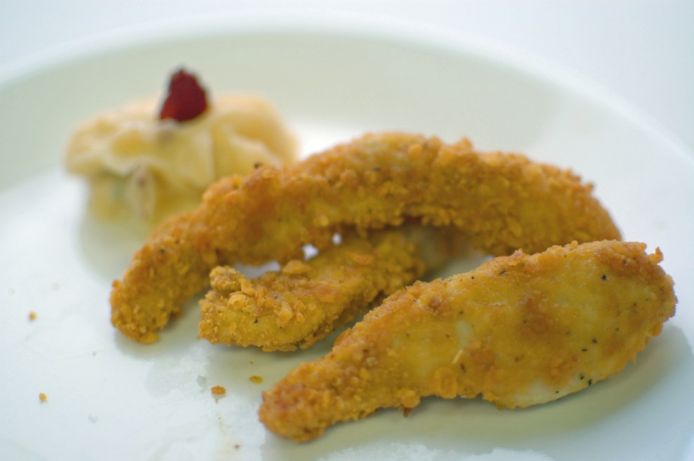 I learned that cheese dip crackers make an excellent breading for a homemade chicken finger