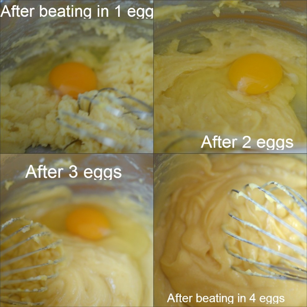 6. Be careful not to add your eggs too soon or you will have scrambled eggs.  Add eggs one at a time, beating after each addition.