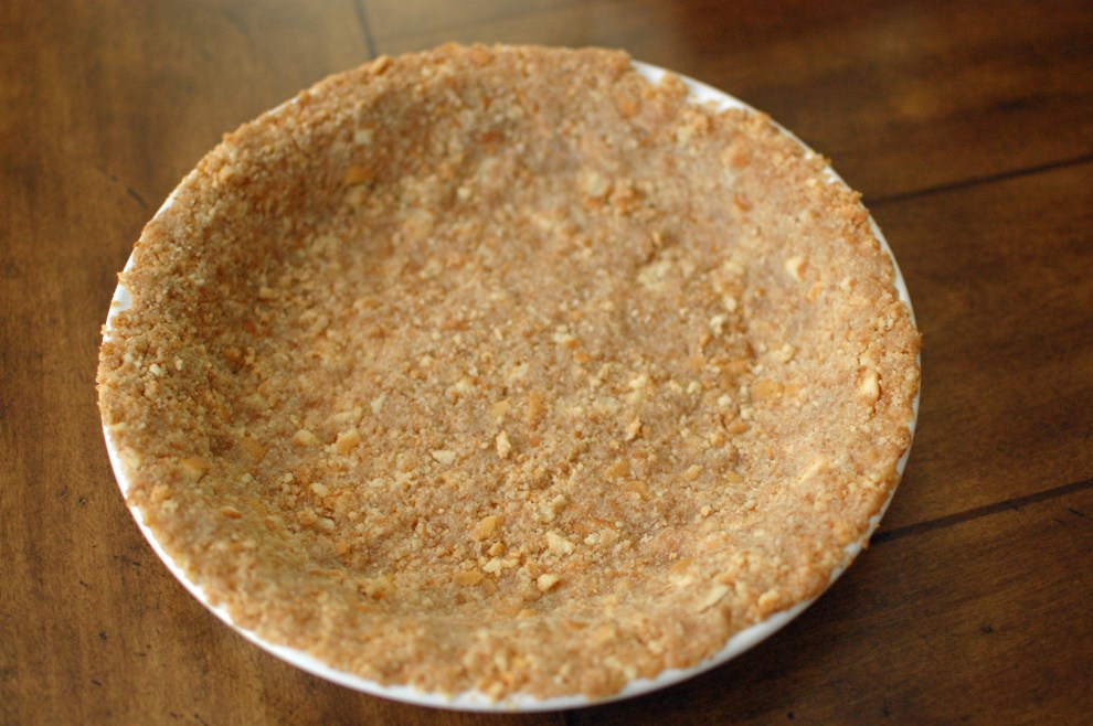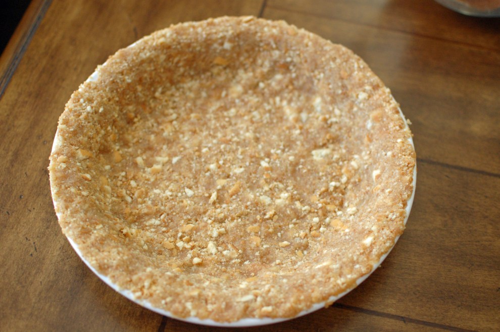 1. Really work the crumbs and butter crust up the side of the pie plate.  Your crust will be even and you will need the room for the filling.