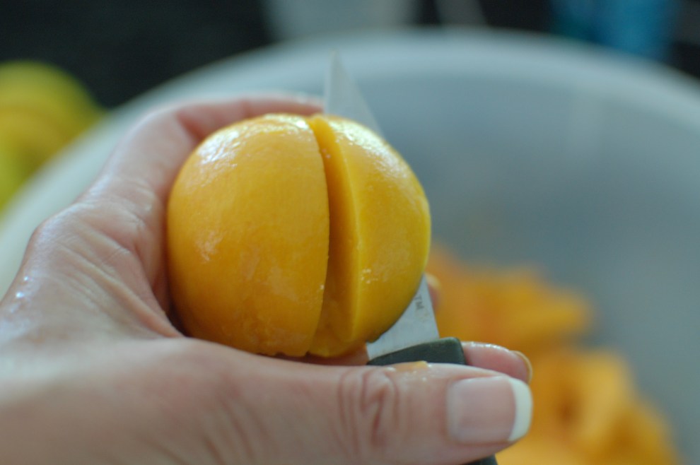 - Peel peaches by sliding off the peel with your hands or a knife. It is so easy.