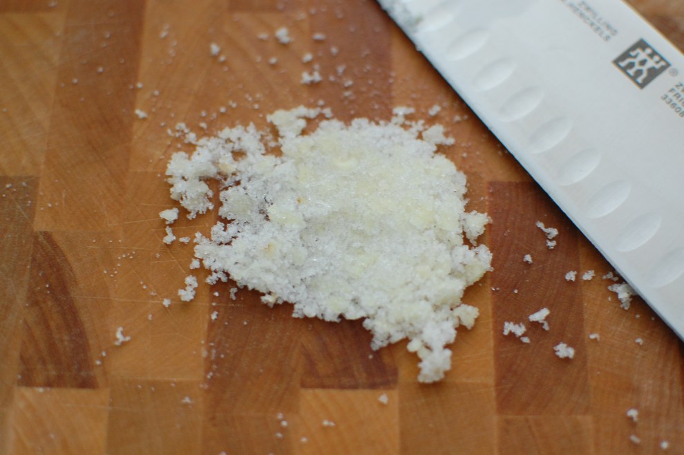 - Mince garlic and mash to a paste with a pinch of salt using the flat blade of a large heavy knife.