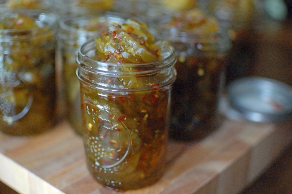 I love pickles and spicy food. So after making one gallon of these hot and sweet pickles I am in pickle heaven. Thanks to my dear friend Marilyn she shared this recipe with me and now I am sharing it with you. She gave me the recipe awhile back and after the shock of seeing 9 cups of sugar I chose not to make them. But, when I ate the entire bowl at our last book club meeting I decided that I should make them and have them at every meal if I so desired. They would make a great gift Christmas, so keep that in mind. They are so easy.