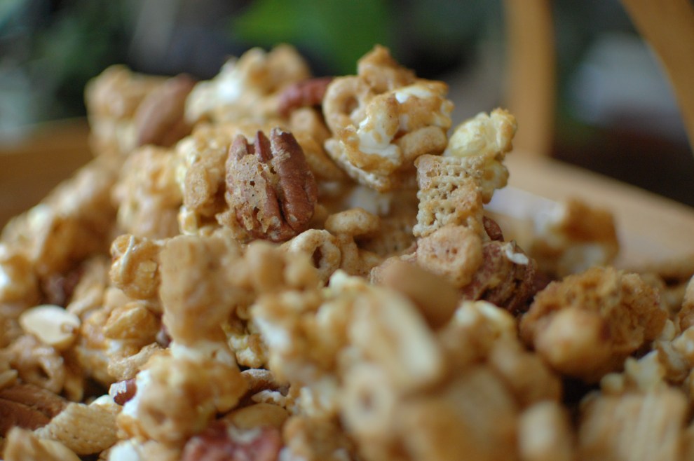 The name says “mixed up” popcorn, but I really think that it is “kicked up” popcorn. This is good stuff. Just for your information this stuff is very addictive. I don’t really care for caramel popcorn, but this is more on the side of popcorn and other stuff covered in pralines. I first had this several years ago when I last went on a real vacation. You know the kind where you stay for a week or more and read several books while sitting in a chair with the beach breeze gently blowing your hair. The kind of time that you never want to end. You have no trouble sleeping. Work is someone else’s problem. The only decision that you have to make is what are you’re having for dinner. I need that right now. Anyway, Anna made this Mixed Up Popcorn for our vacation and it was a fight for the last bite. It is that good!