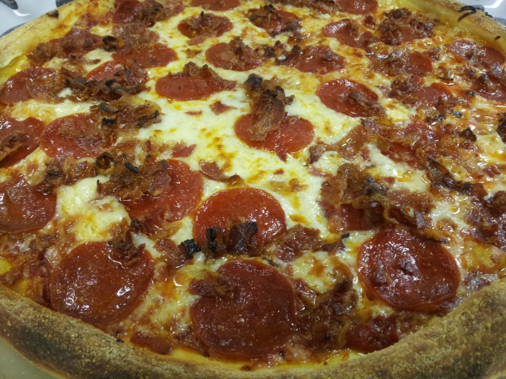 This pizza was so good! I learned not to use a lot of pizza sauce because it can make the pizza very soggy.