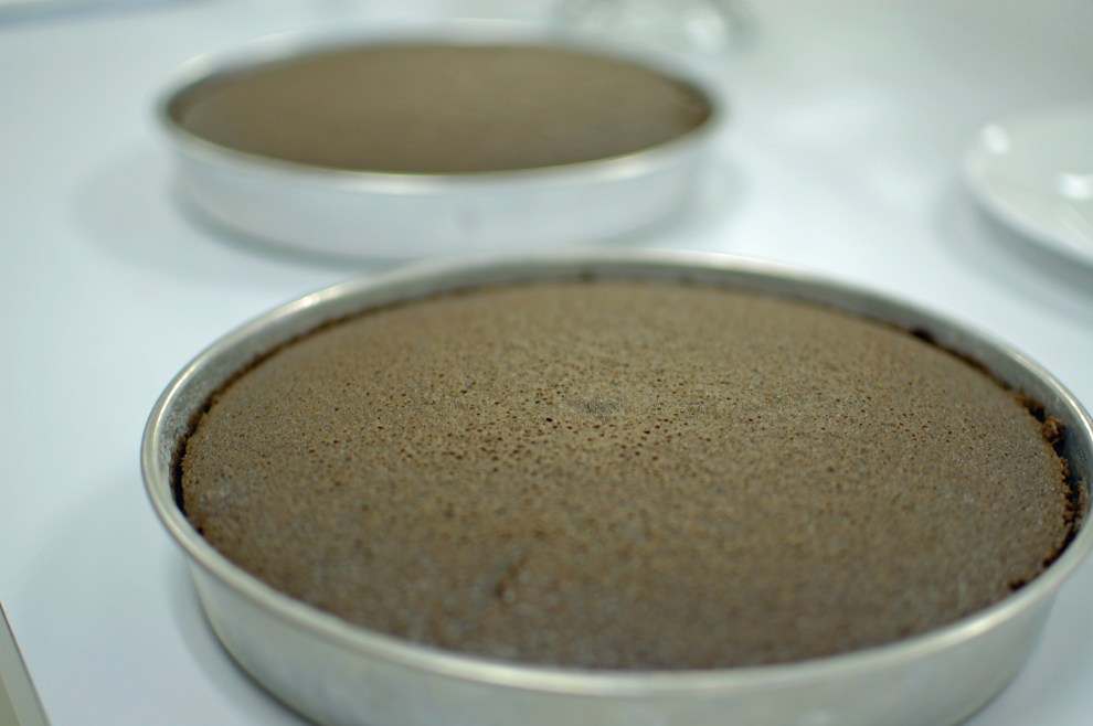 I learned that you use 29-inch round cake pans and can put frost or dust it with powdered sugar after its done baking if you want.