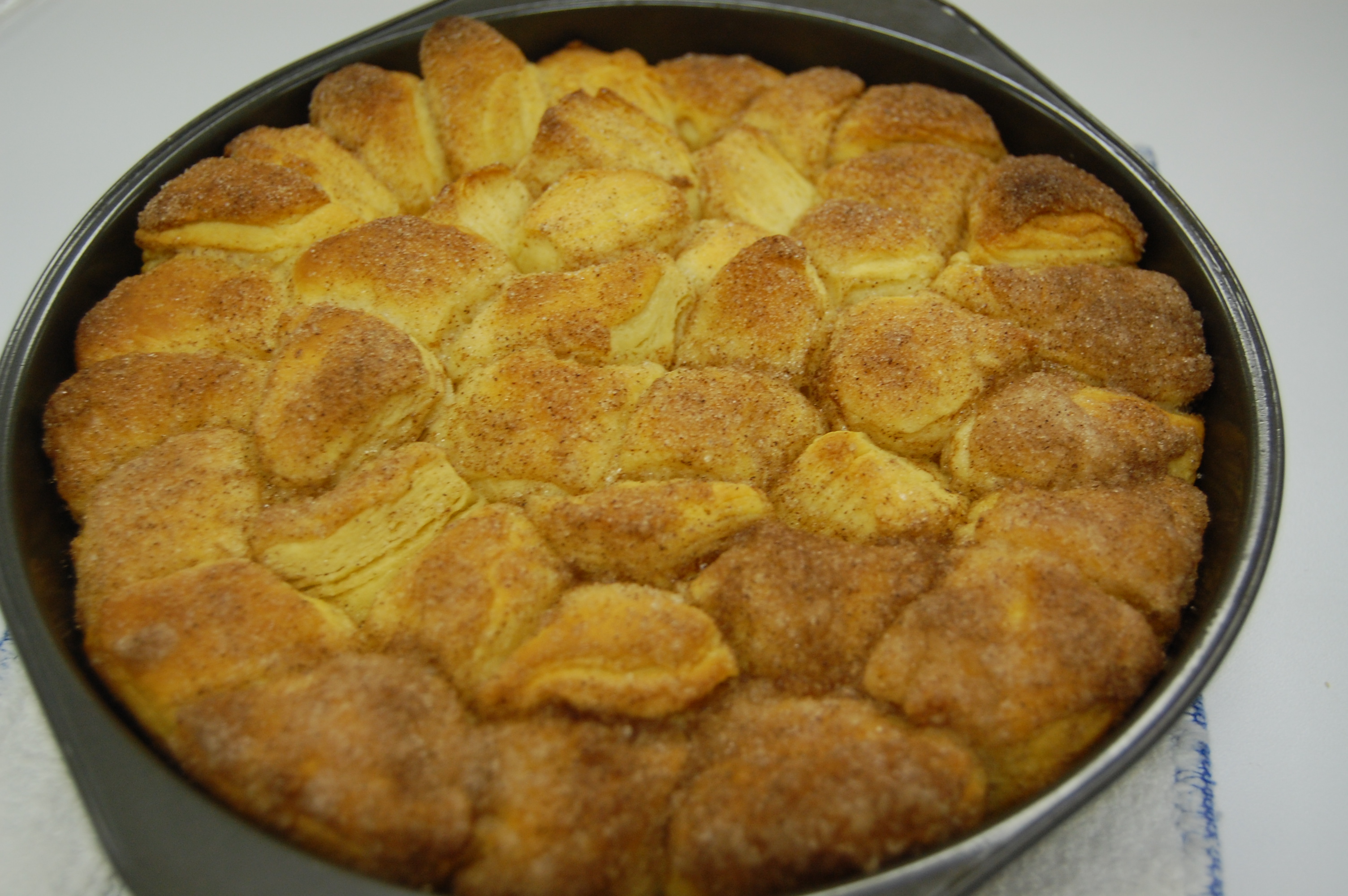 I did not make anything spectacular.  I just used a can of refrigerated biscuits and made something a little different.  The recipe came out of a textbook we used a few years ago.  It is not that healthy, but it is quick and good.   I made two variations.  One savory Pull-apart Parmesan Dill Bread and the other sweet Pull-apart cinnamon and sugar bread.  They both are very good.