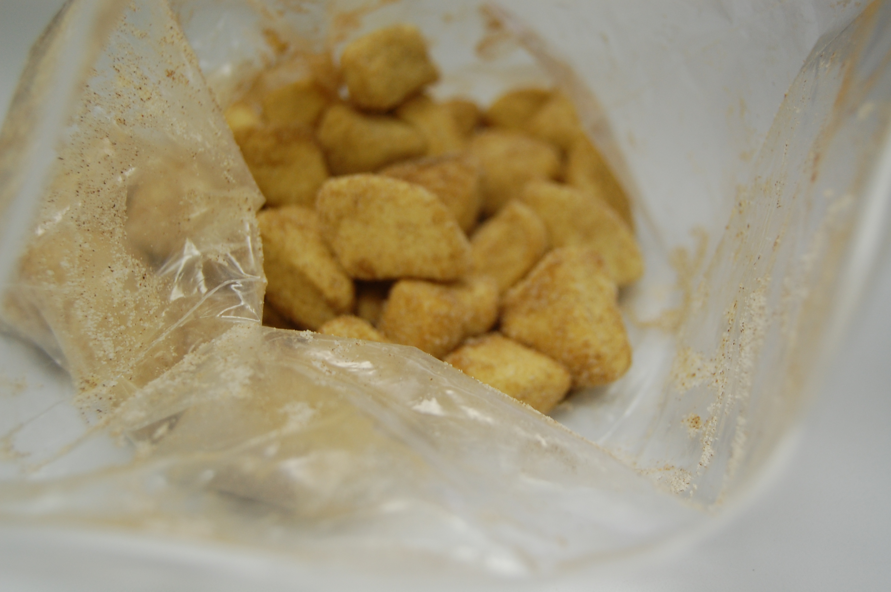 That is what happened this morning.  The recipe did not call for you to put the seasonings in a bag and shake to cover, but to put them in a small bowl .  WRONG!  Putting them in a bag was much more efficient.  So thanks to a young gentleman in my first block we changed the recipe to be much more efficient.