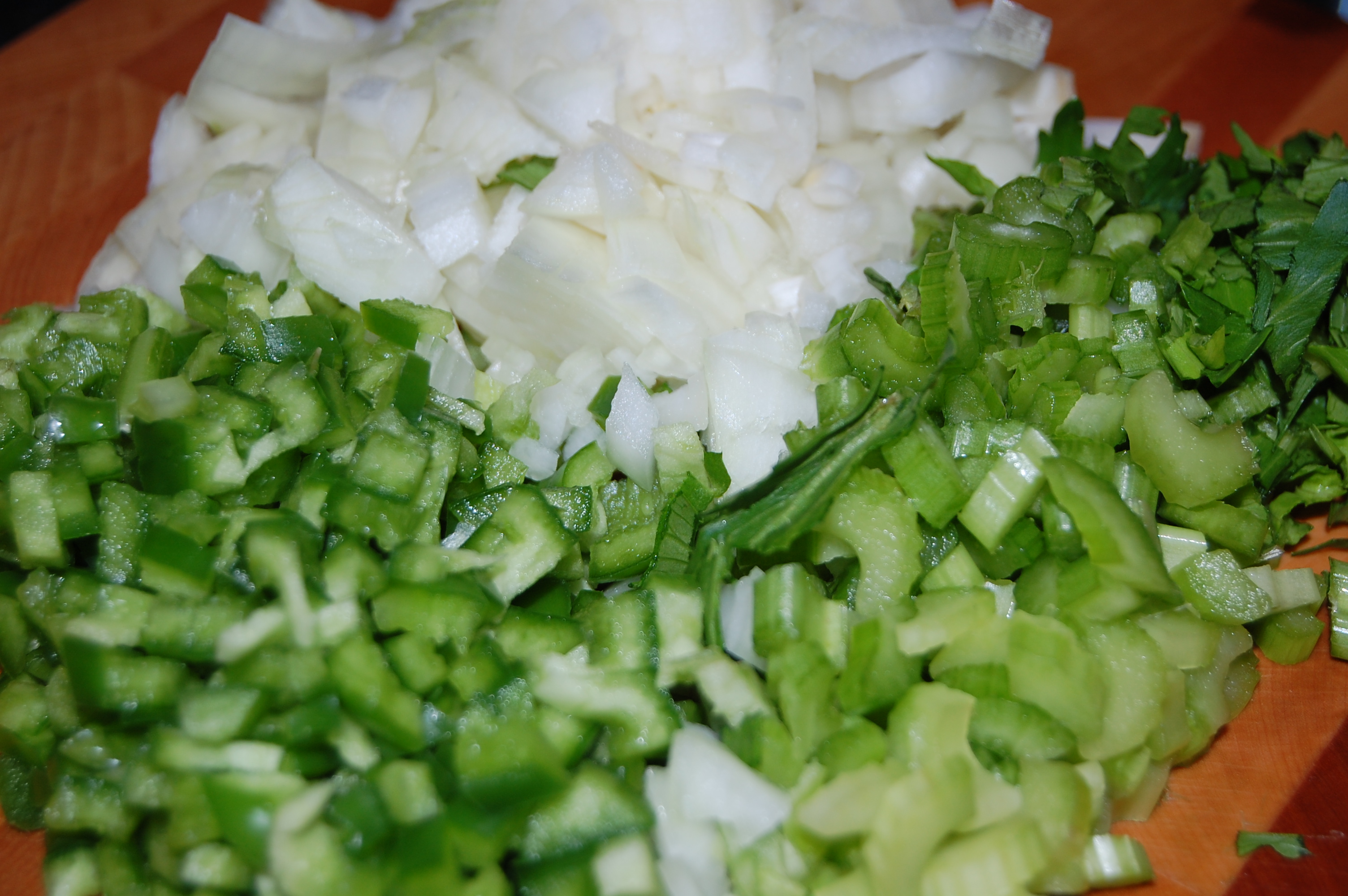 ! cup chopped onion, 1/2 cup chopped celery, 1/2 cup chopped green pepper